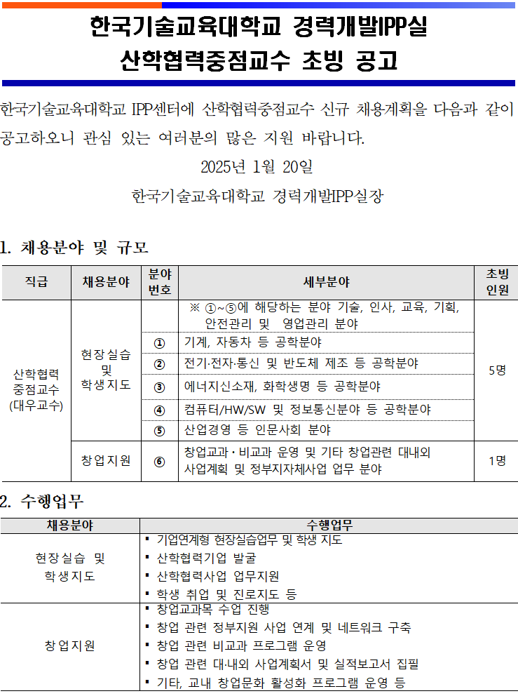 경력개발IPP실 산학협력중점교수 초빙 공고
