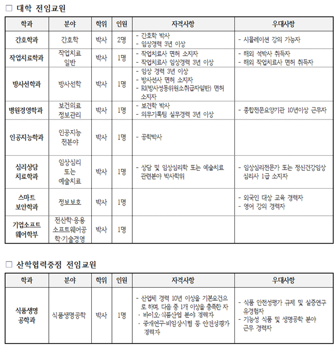 1. 초빙분야 및 자격, 우대사항 : 첨부한 공고문 및 서식 파일을 확인해 주시기 바랍니다.