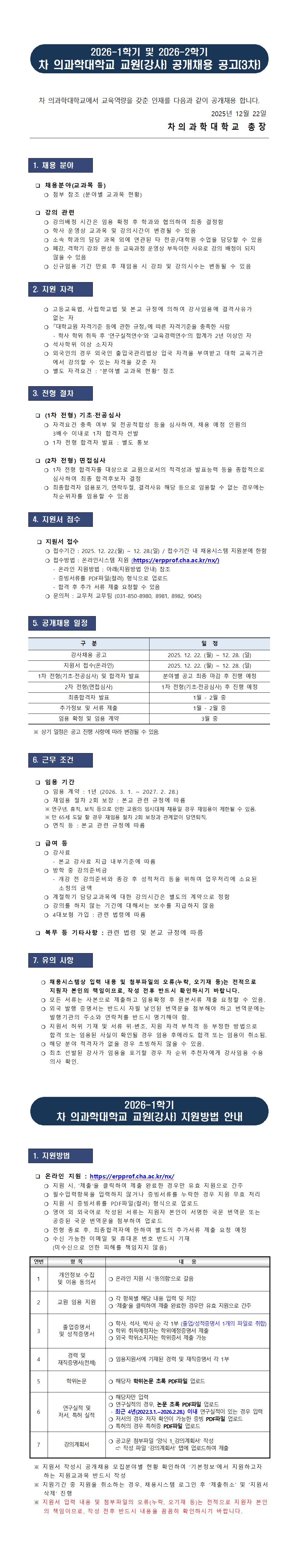 차 의과학대학교 2026-1학기 및 2026-2학기 강사 공개채용 3차 공고