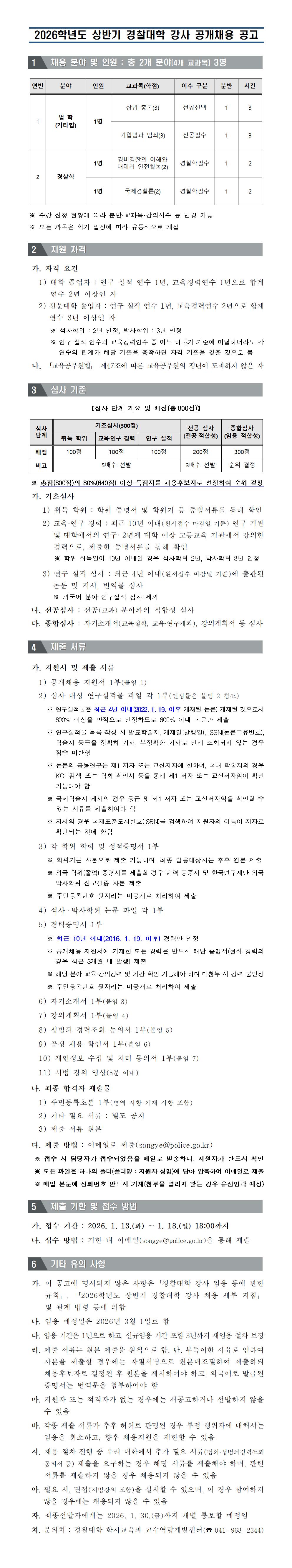 2026학년도 상반기 경찰대학 강사 공개채용 공고